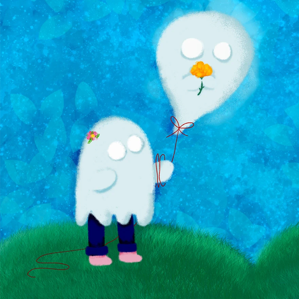 Las siguientes ilustraciones cuentan, en secuencia, lo difícil que es dejar ir a alguien que ha partido. A veces, el dolor nos convierte en fantasmas de nosotros mismos, atrapados en la ausencia. Pero llega un día en que ambos, quien se fue y quien se queda, comprenden que es momento de seguir adelante.