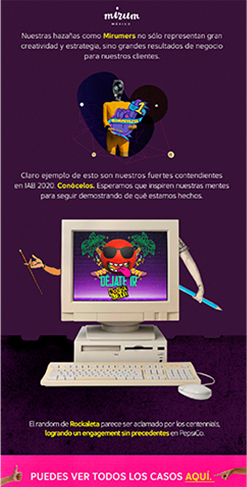Mientras trabajaba en la agencia Mirum, desarrollé el concepto para su comunicación interna y externa, además de crear piezas como portadas, publicaciones, correos y más.