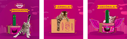 Whiskas, presentó su nueva caja para los mininos y para su lanzamientos, participe en la creación de su campaña, dirección de arte, ilustraciones y videos.